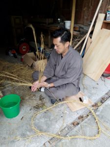 祠に付けるしめ縄も手作りです。