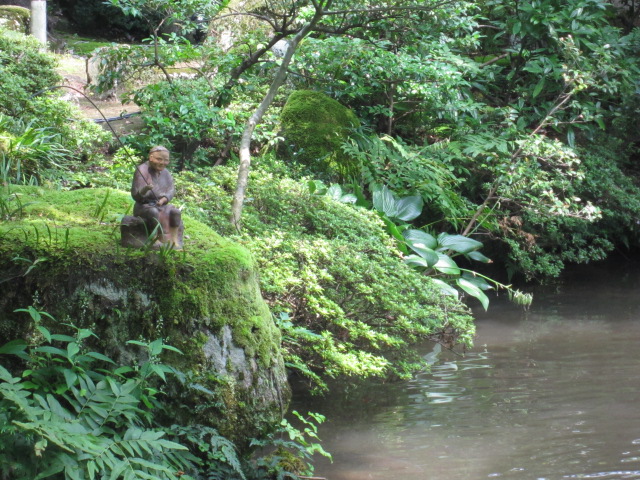 環翠楼の池で釣をしているおじいちゃん。
