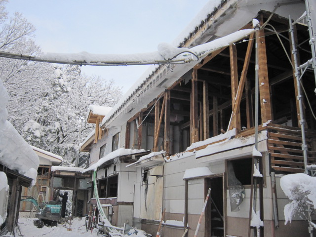 同時に大工さんたちが新しい柱や壁を作り始めていました。