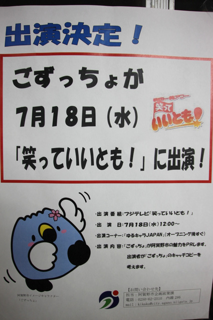 阿賀野市のゆるキャラ「ごずっちょ」が出演します。