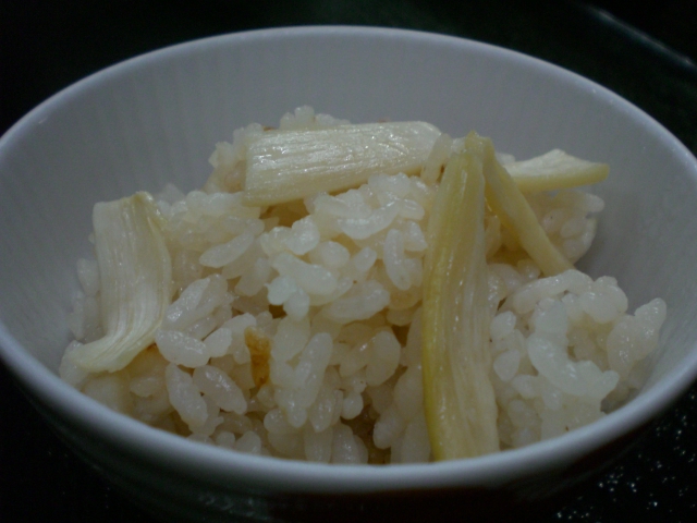 新米コシヒカリとマコモタケの炊き込みごはん。
