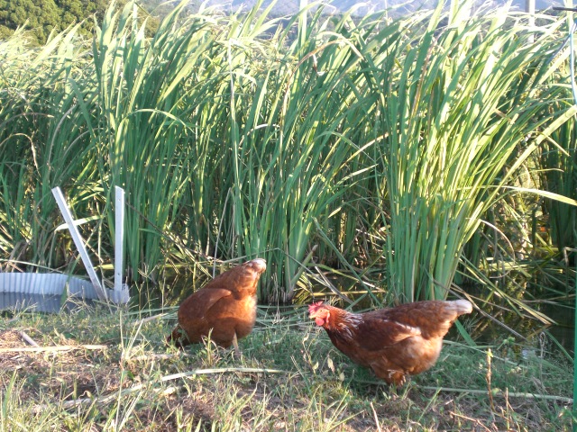 ニワトリが放し飼い。