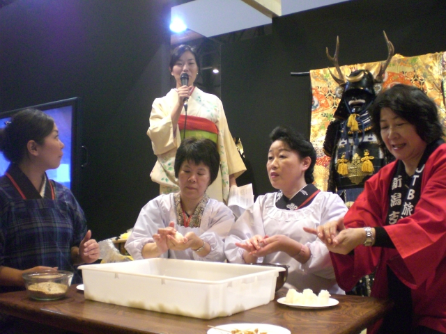 女将さんたちがにぎった「おにぎり」を振舞ったり