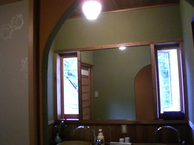 「鶴」の洗面台の窓からはむささびが出入りする穴を見る事ができます。