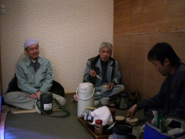 左が大工の町田さん、右が阿賀グローバルの長谷川君。