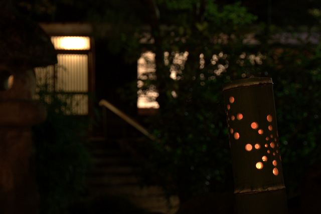夕方、竹灯かりに