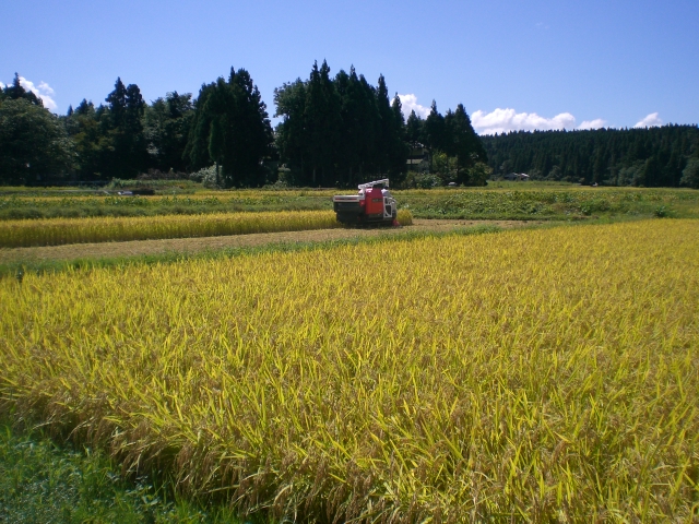 五頭の里でも稲刈りが始まりました。
