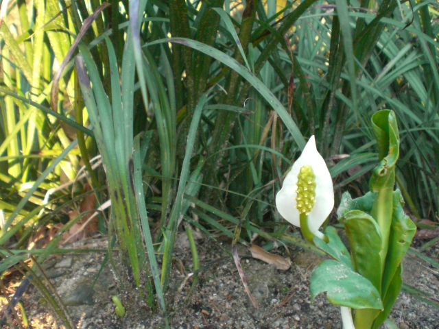 お客様がおすそ分けで植えてくださった、水芭蕉。
