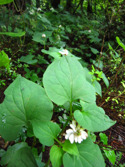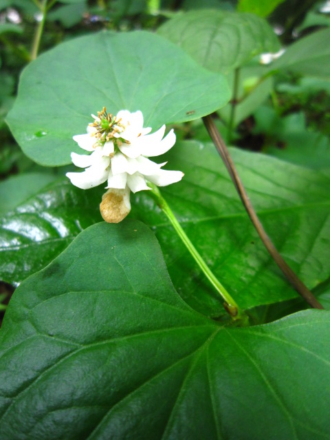 雨に濡れながら庭でどくだみの花が咲いていました。
