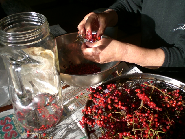 おばさんたちは手馴れた手つきでズミの実を採っています。