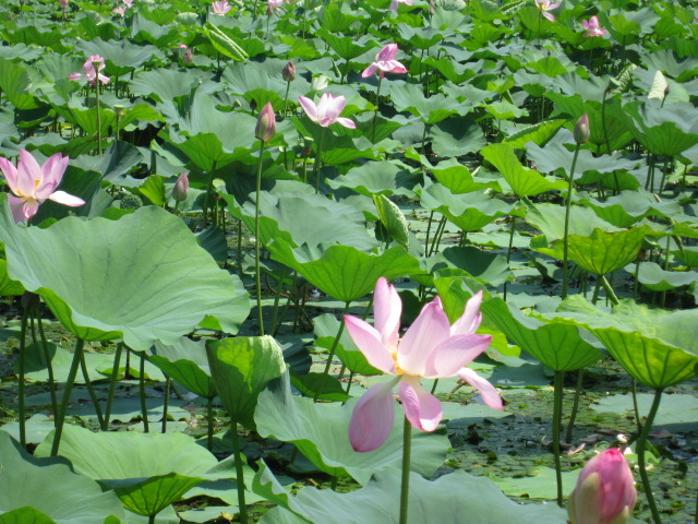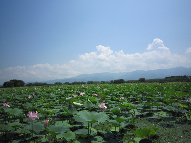 環翠楼から車で10分、瓢湖のハスの花が見頃です。