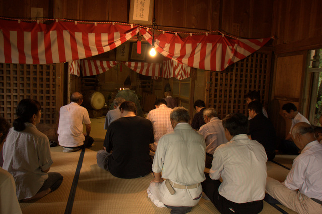 朝、環翠楼の目の前にある神社に村杉集落の皆集まります。