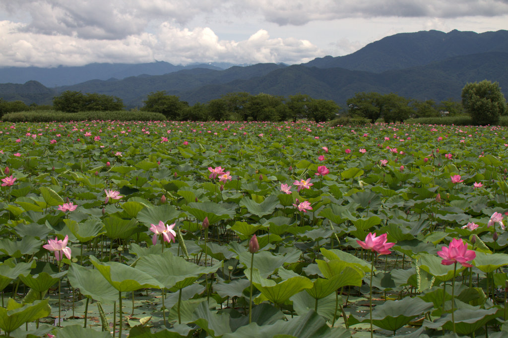 瓢湖のハスの花が見頃です。