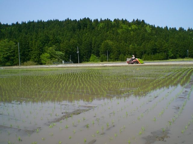 稚苗の間を遠慮なく吹き抜ける風は爽やかです。