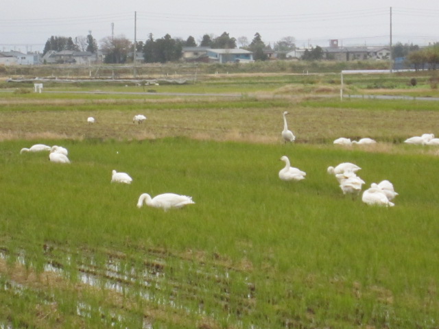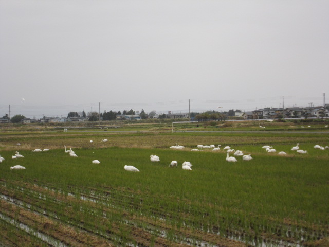 こんなふうに瓢湖近くのたんぼにはエサを食べにお出かけしています。