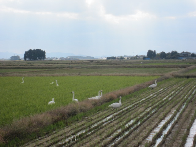 日中、たんぼにいる白鳥を見るのもほのぼのして良いですが、