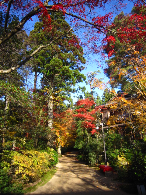 環翠楼の庭の中に光が差し込んで紅葉の色もひときわ冴えます。