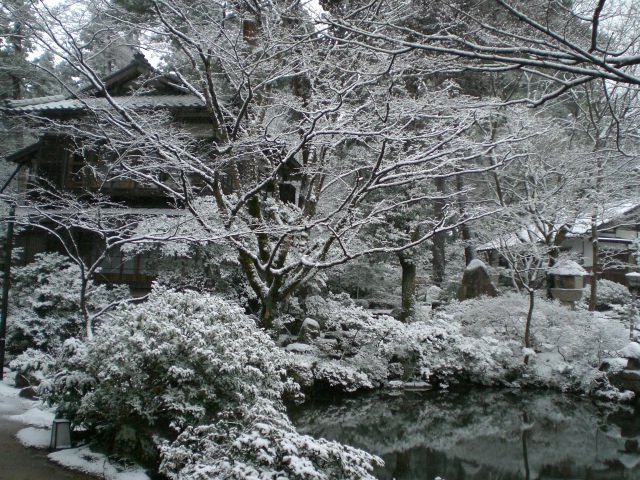 村杉温泉内も雪化粧。