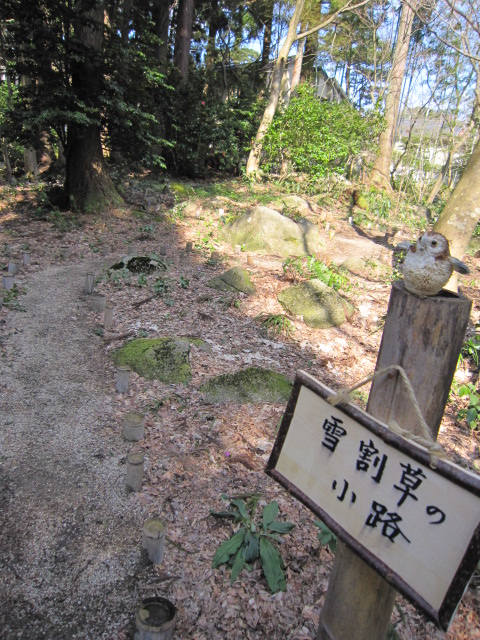 環翠楼の庭の一角にある雪割草の小路