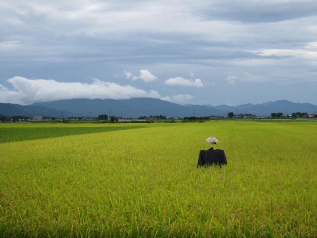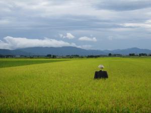 案山子がたんぼの真ん中に。